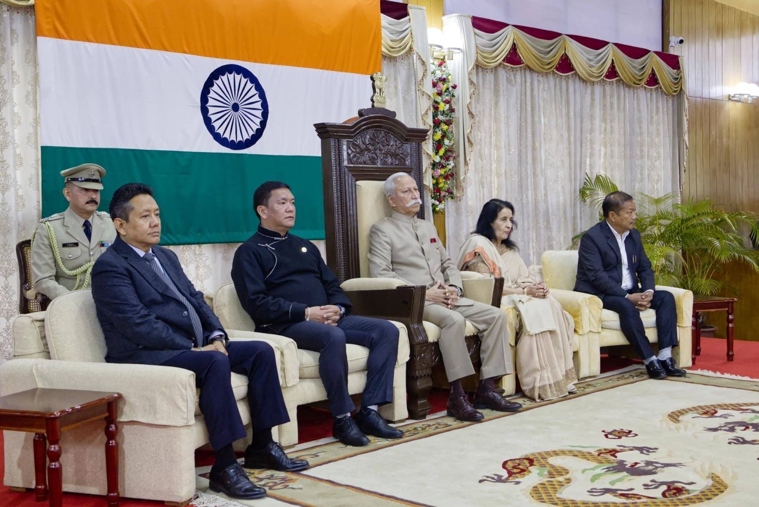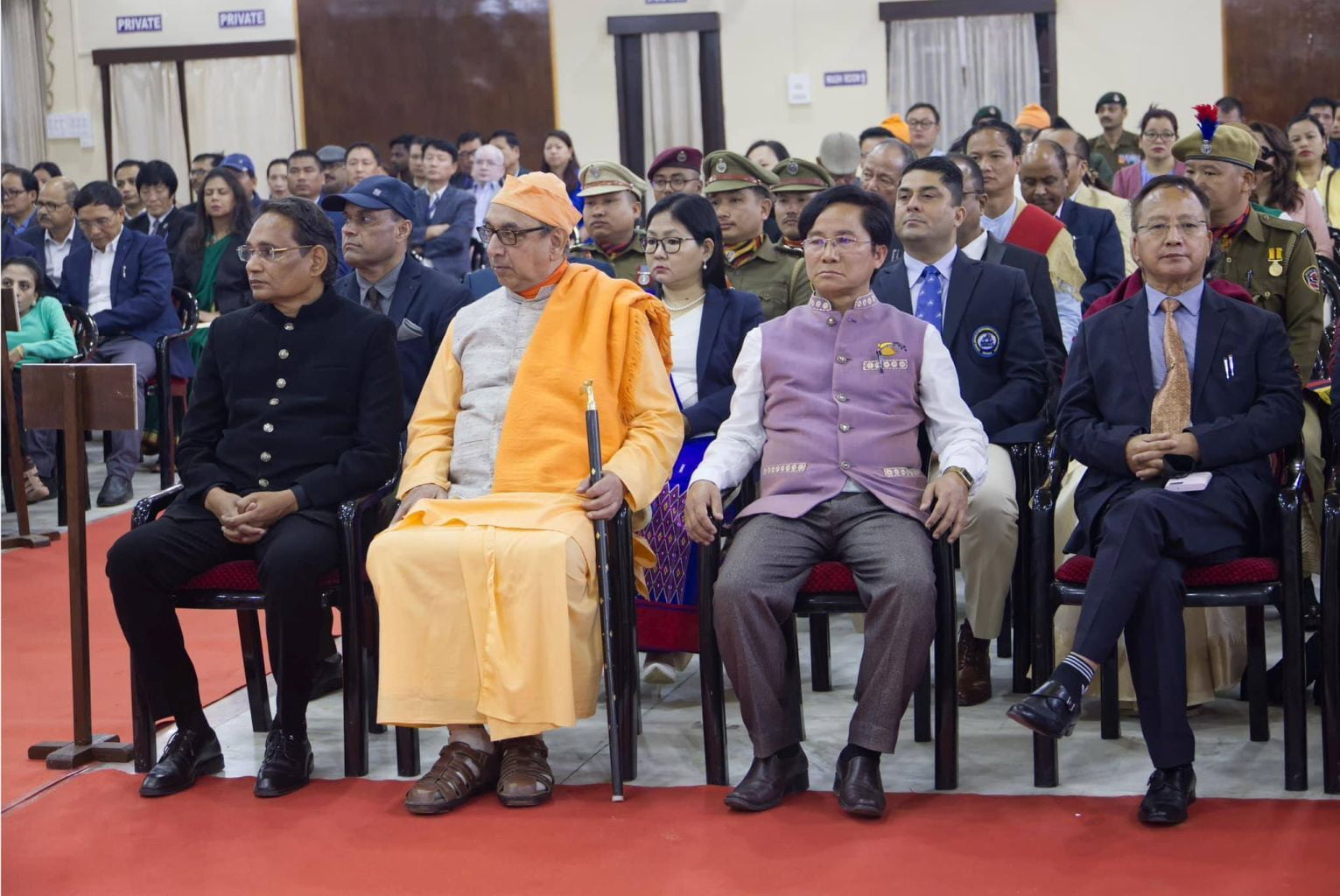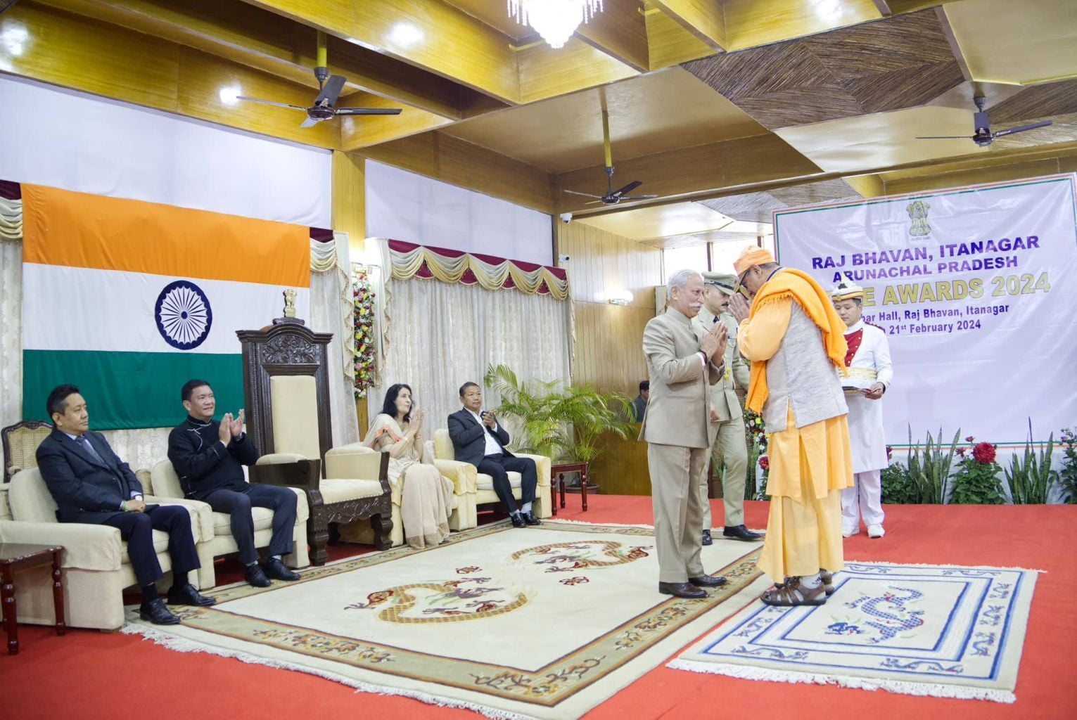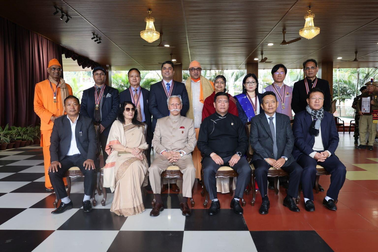 The Ramakrishna Mission received a gold medal from Lt Gen Kaiwalya Trivikram Parnaik, PVSM, UYSM, YSM (Retd), the Hon'ble Governor of Arunachal Pradesh, in appreciation of its meritorious services rendered to the state. Swami Sarvaganandaji, a senior monk of the Ramakrishna Mission in Arunachal Pradesh, accepted the award on behalf of the organisation at a ceremony conducted on February 20, 2024, the statehood day of Arunachal Pradesh, at Gen. Bipin Rawat Hall, Raj Bhawan, Itanagar.