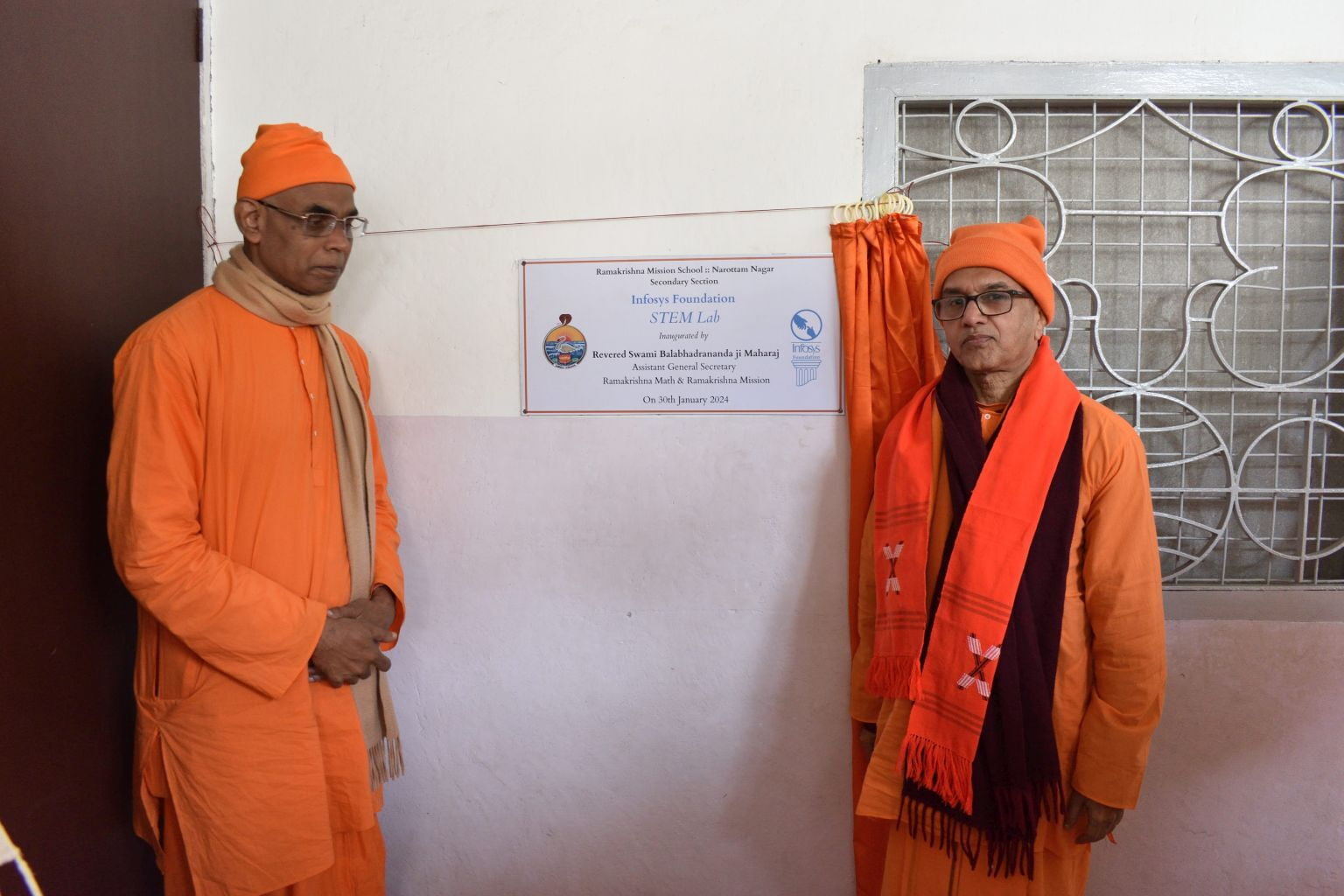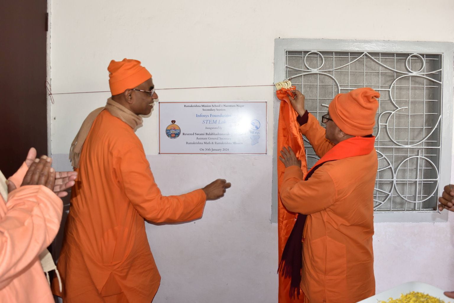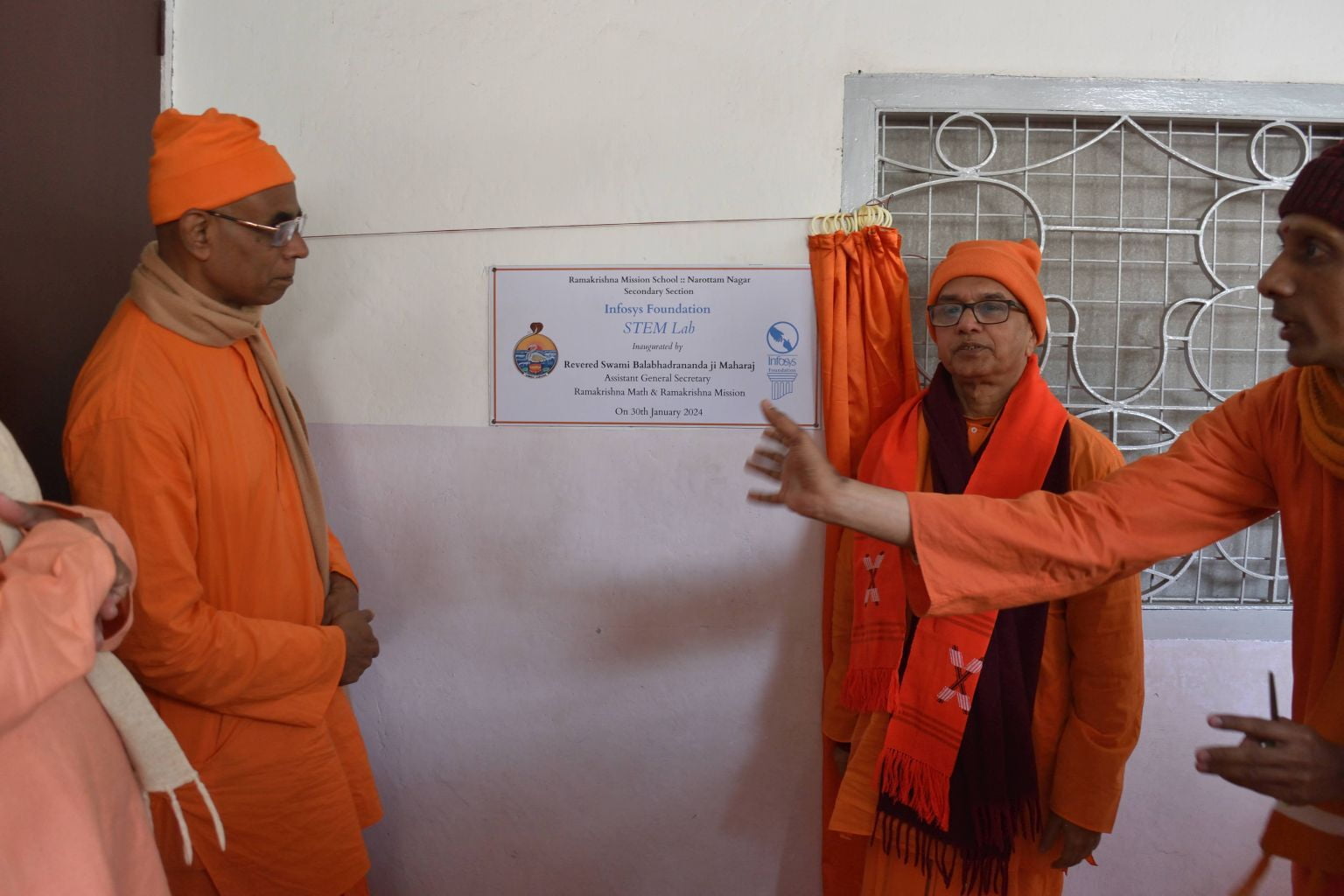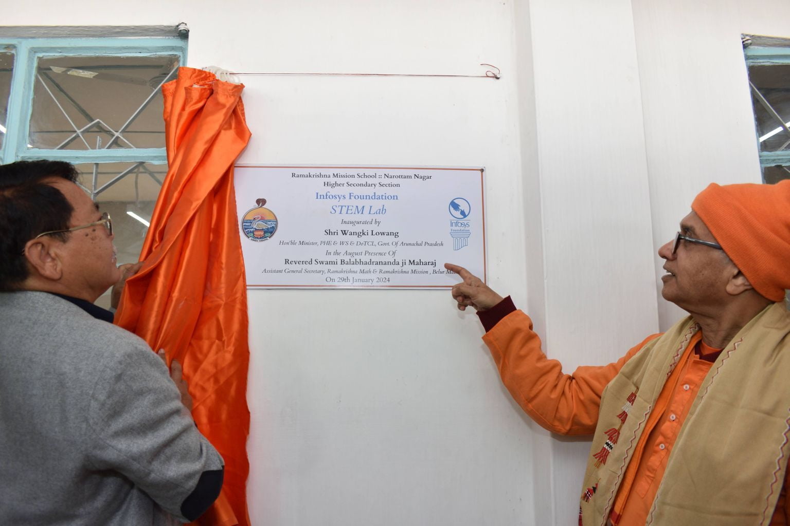 The inauguration of the Infosys Foundation STEM labs at the Higher Secondary and Secondary sections of Ramakrishna Mission School, Narottam Nagar, Arunachal Pradesh, marked a significant milestone in advancing education and technological accessibility in tribal areas. The inauguration programmes, held on January 29 and 30, 2024, were graced by Revered Swami Balabhadranandaji, Assistant General Secretary of Ramakrishna Math and Ramakrishna Mission, and Shri Wangki Lowang, Hon’ble Minister of PHE & WS, DoTCL, Arunachal Pradesh.