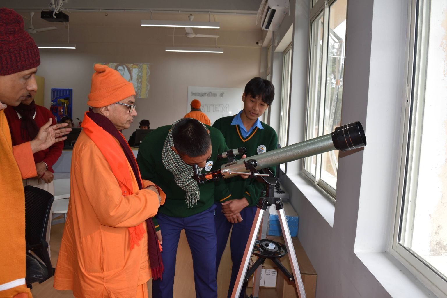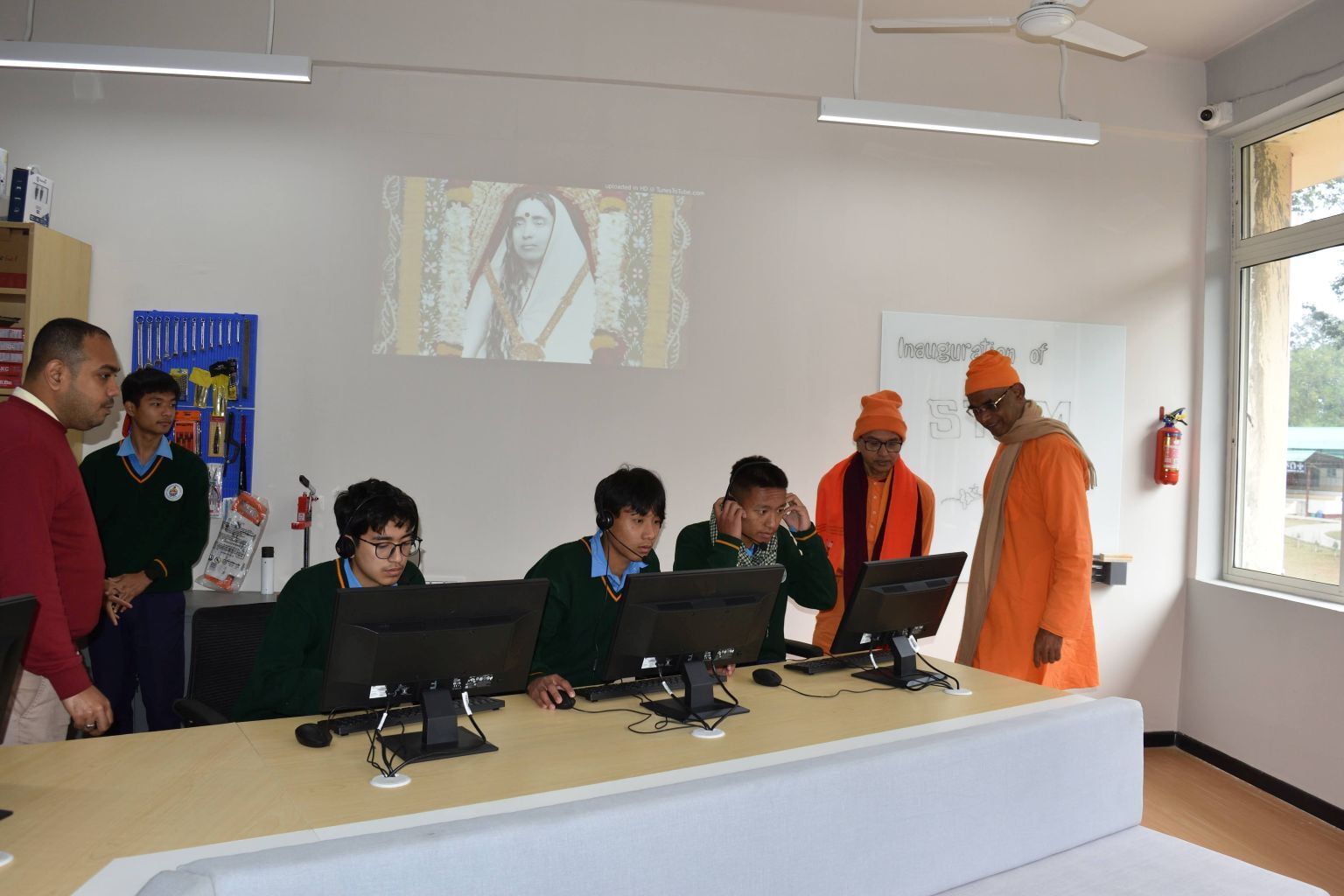The following day, January 30, 2024, the STEM lab at the Secondary section was inaugurated which was attended by a diverse gathering of monastic members, students, and staff members. Swami Balabhadranandaji, inaugurated the lab, and emphasised the profound impact these labs would have on the student community.