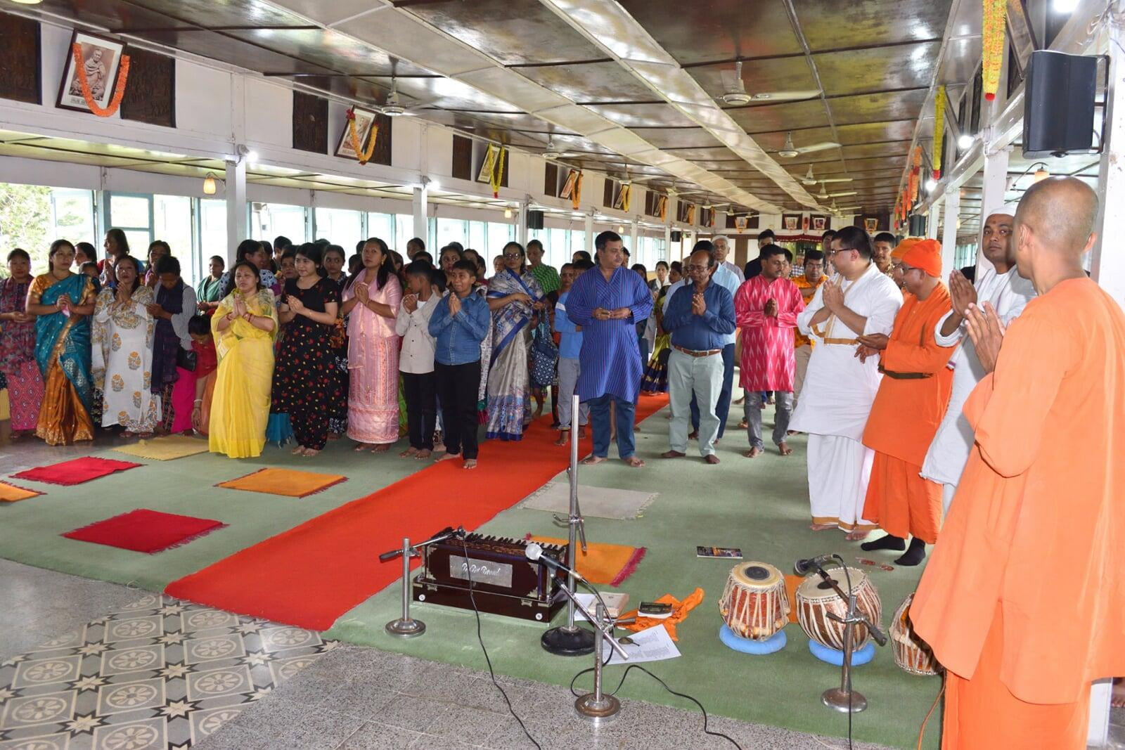 On Sunday, April 7, 2024, a special puja and havan were held in the secondary prayer hall of Ramakrishna Mission Narottam Nagar in memory of Srimat Swami Smarananandaji Maharaj, the 16th president of Ramakrishna Math and Ramakrishna Mission. Following the bhogarati, almost a hundred and fifty devotees offered pushpanjali. Everyone had prasad at the secondary dining hall.