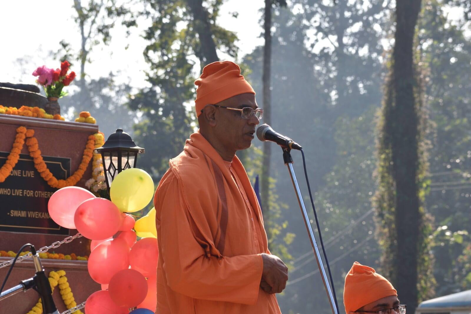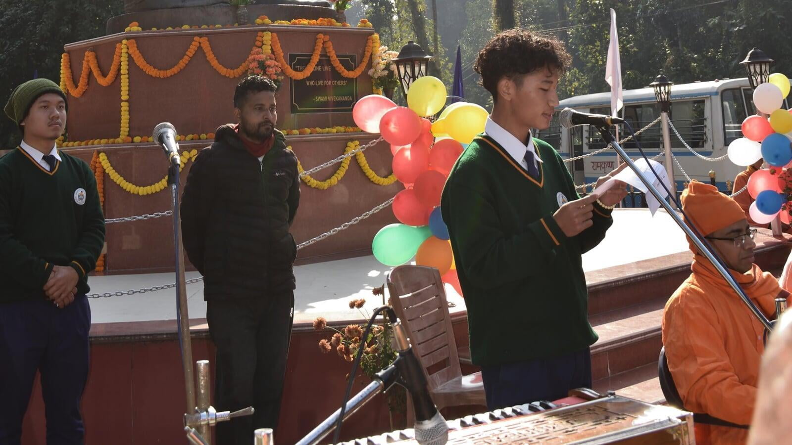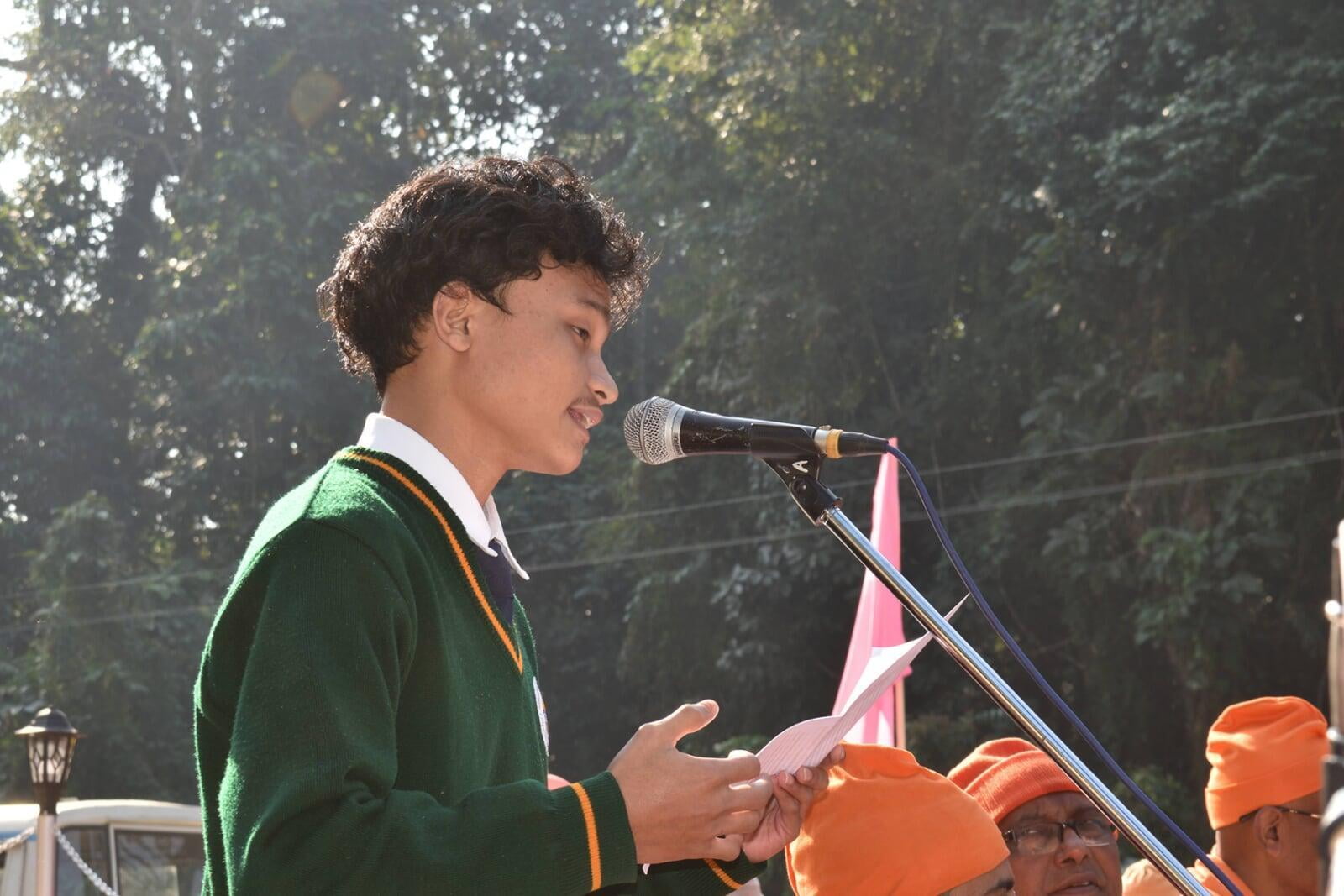 Swami Achyuteshananda ji, Secretary, Ramakrishna Mission, Narottam Nagar reminded the audience of the immense potential that lies within each young individual. Guest Speaker Mr Subroto Banerjee shared his wisdom and insights on the celebrations. Mst. Nana Juna Riang of class 12 rendered a speech on Swami Vivekananda’s message for the youth and its relevance in today's society. Mst. Phuntso Tashi Gyamo of class 12 recited 'The living God' penned by Swami Vivekananda. The celebrations also included soulful bhajans by the students of the higher secondary section, and floral tributes to the Swami Vivekananda statue at Vivekananda Marg by monastic members, staff, and students. Staff members and students in grades 9 through 12 took part in the programme.