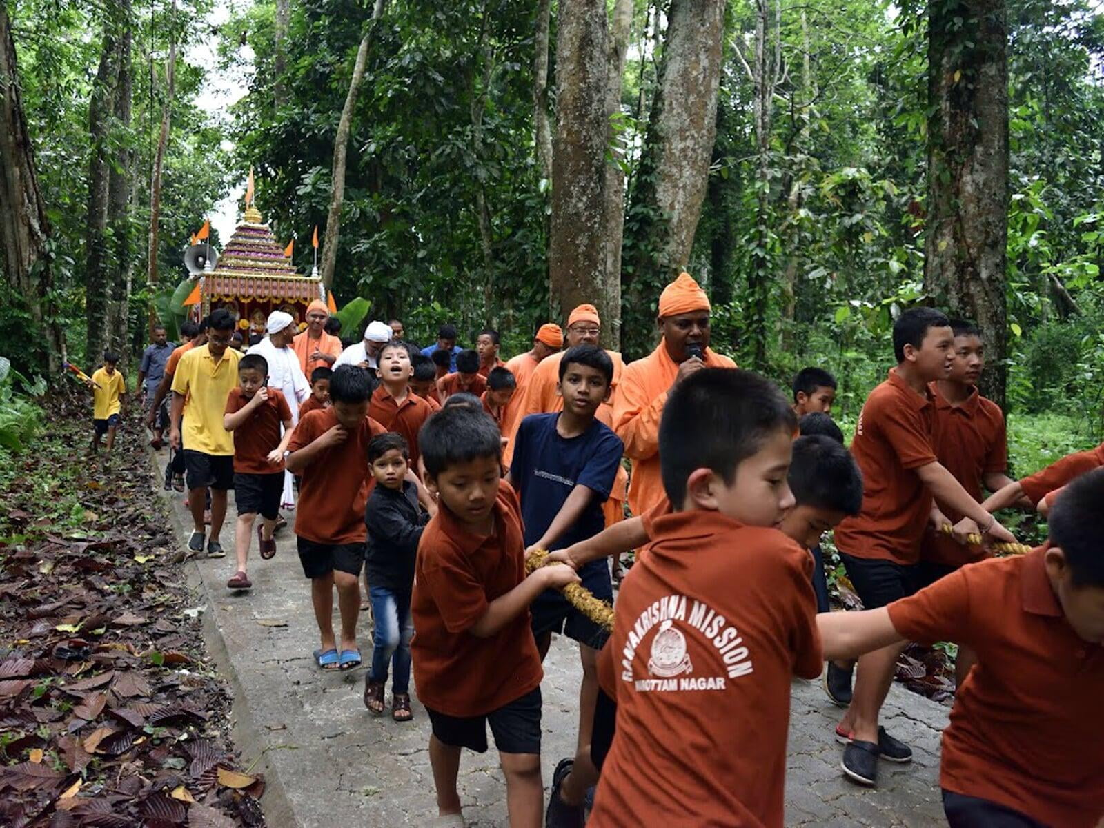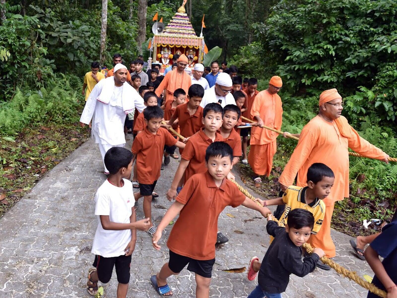 On June 28, 2023, the Lord Jagannath Return Chariot Festival took place. The journey started at the Devabhumi Temples and concluded at the primary hostel. The Ramakrishna Sangha sannyasins were accompanied in the celebrations by the students, faculty, and their families. Everyone was given prasad and juice at the primary hostel.